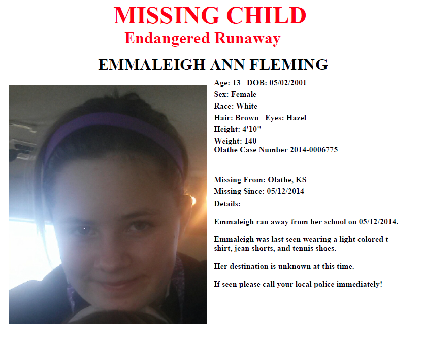 Emmaleigh A. Fleming was last seen on May 12 when she walked away from her school.