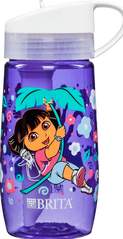 The recalled bottles include a violet bottle with Dora the Explorer, a pink bottle with Hello Kitty, a blue bottle with SpongeBob Square Pants and a green bottle with Teenage Mutant Ninja Turtles. Each bottle has a Brita logo and white lid.